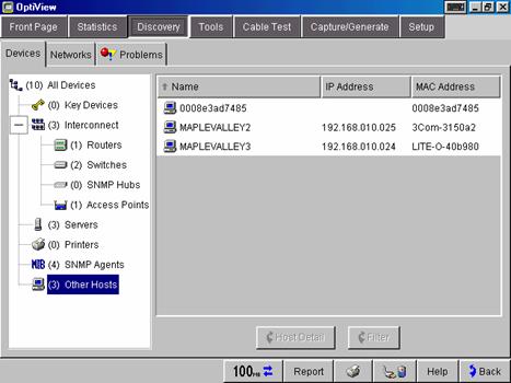 分析儀一旦連接到網(wǎng)絡(luò),無需任何交互,即會自動通過流量監(jiān)控和實(shí)時主機(jī)查詢開始發(fā)現(xiàn)網(wǎng)絡(luò)中的設(shè)備。IT 人員立即可以按交換機(jī)、插槽和端口號查看網(wǎng)絡(luò)中連接的設(shè)備,并查看設(shè)備的連接位置。他們可以調(diào)查并迅速確定“可疑”設(shè)備的位置,只需少量工作即可識別與設(shè)備配置不當(dāng)有關(guān)的問題。分析儀將設(shè)備劃分為互連設(shè)備(路由器、交換機(jī)、SNMP集線器和接入點(diǎn))、服務(wù)器、打印機(jī)、SNMP 代理和其它主機(jī)。此外,還按 IP 子網(wǎng)、VLAN、NetBIOS 域和 IPX 網(wǎng)絡(luò)、再加上每個類別的主機(jī)關(guān),,,系來劃分網(wǎng)絡(luò)。可能存在問題的網(wǎng)絡(luò)設(shè)備也會被發(fā)現(xiàn)??蓹z測的問題包括:IP 地址重復(fù)、子網(wǎng)掩碼錯誤、默認(rèn)路由器無響應(yīng)以及其它問題。