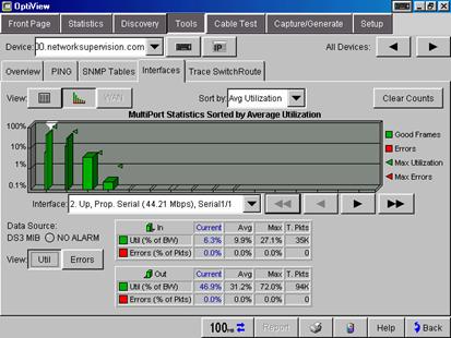 深入的設(shè)備分析可以識別 Router ARP 緩存錯誤或路由表錯誤,同時讓您能夠以可視化方式管理和排除成本高昂的 WAN鏈路故障。請參閱 WAN 鏈路配置,它以圖形化方式顯示了利用情況和錯誤率,并標(biāo)識了有關(guān) ISDN、幀中繼、T1/E1、T3 和ATM 鏈路的特定錯誤類型。