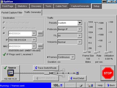 用戶可以配置協(xié)議類型、幀大小、幀速、使用率百分比和要傳輸?shù)膸瑪?shù),以及流量類型:廣播、多播或單播。