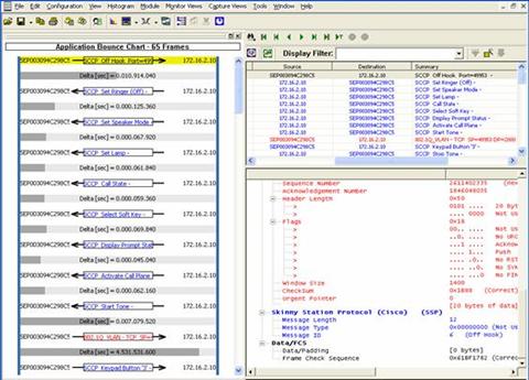 VoIP 選件為最常用的 VoIP 協(xié)議(H.323、Cisco Skinny(SCCP)、MGCP 和 SIP)提供了詳細(xì)的解碼功能。詳細(xì)的信息可用于快速確立呼叫建立問題。與易于使用的單一呼叫過濾器和呼叫與通道表視圖結(jié)合使用后,可以輕松解決通常由配置錯誤、網(wǎng)絡(luò)設(shè)備不兼容以及互操作性引起的呼叫建立故障。